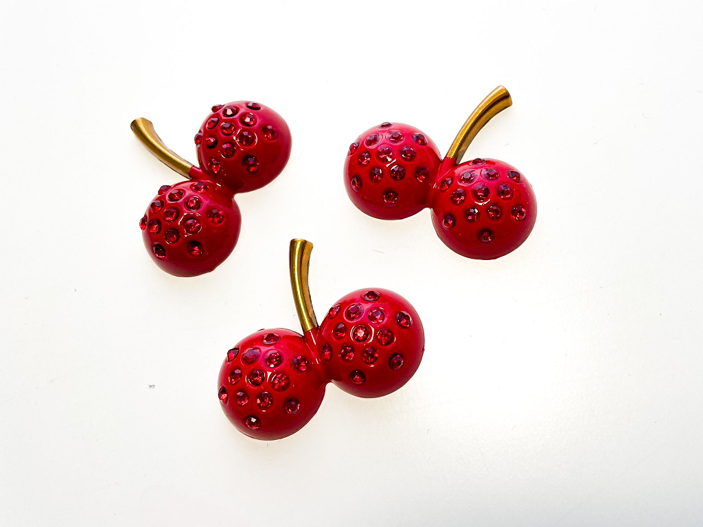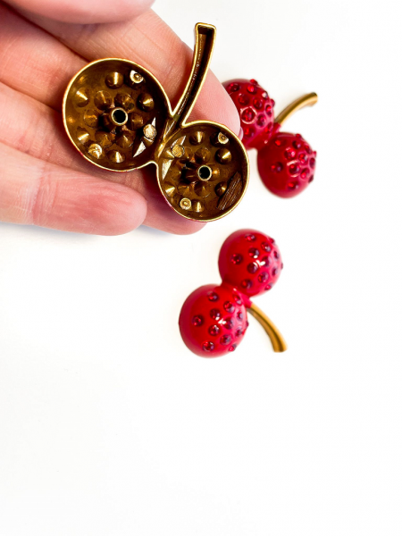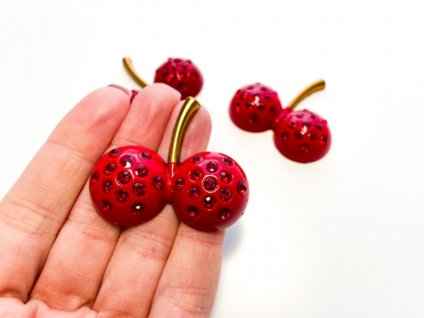 Accessorio per borsa modello ciliegia, placcato oro chiaro. Nel frutto sono presenti dei piccolissimi punti luce per rendere il tutto più scintillante!!
