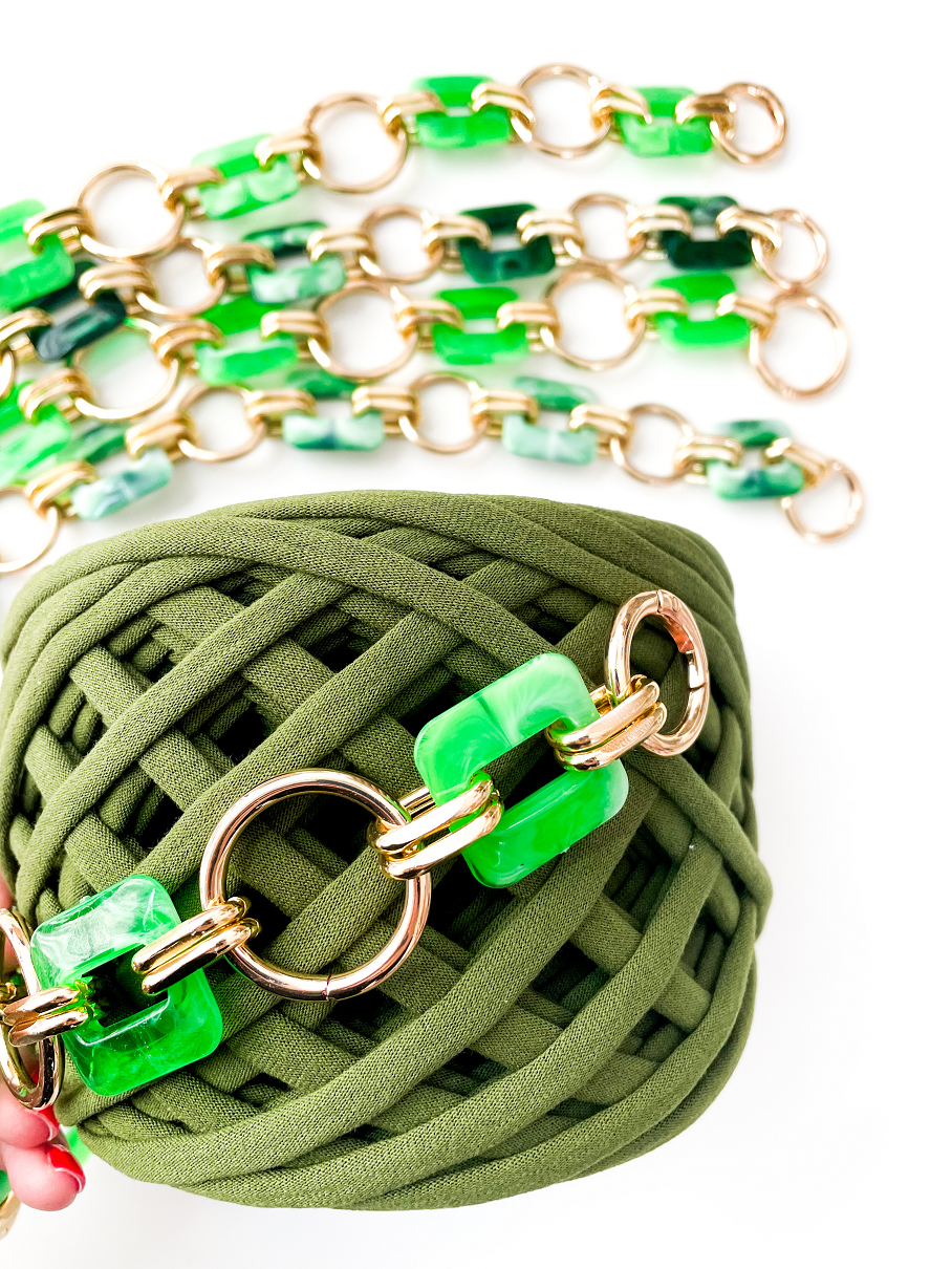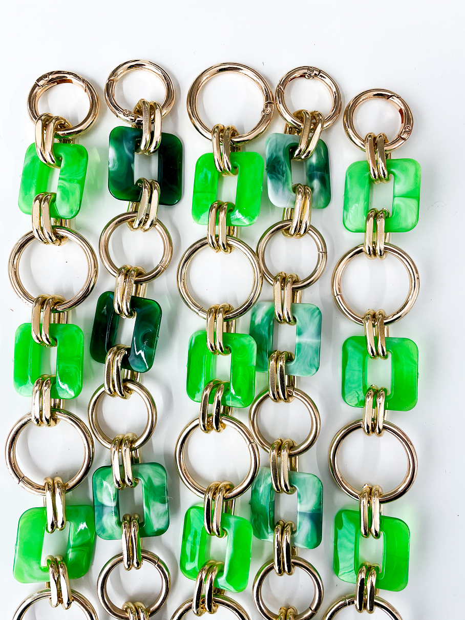 Il manico per borse fai da te in resina verde effetto marmorizzato è un accessorio raffinato e moderno, perfetto per personalizzare le tue creazioni.