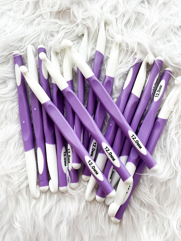 La plastica, materiale leggero e resistente, garantisce una presa comoda senza appesantire il lavoro, riducendo la fatica durante le sessioni di lavoro lunghe. La sua forma e dimensione sono pensate per lavorare con fili molto spessi, come quelli utilizzati per creare coperte, tappeti, borse o altre creazioni artigianali che richiedono un uncinetto robusto e capace di gestire il carico del filato jumbo senza danneggiarsi. La superficie liscia del materiale plastico assicura che il filato scivoli facilmente, mentre la testa dell'uncinetto è progettata per afferrare efficacemente anche i fili più grossi senza perderli durante la lavorazione.