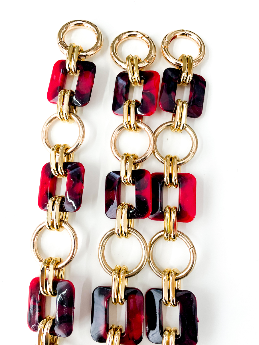 Il manico per borse fai da te in resina rossa effetto marmorizzato è un accessorio raffinato e moderno, perfetto per personalizzare le tue creazioni.